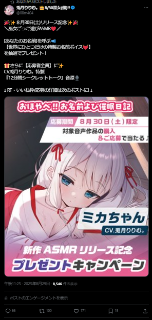 (5) 当選者には、[あなたのお名前を収録した”限定音声”]を進呈!(次回作までを目安に!!)